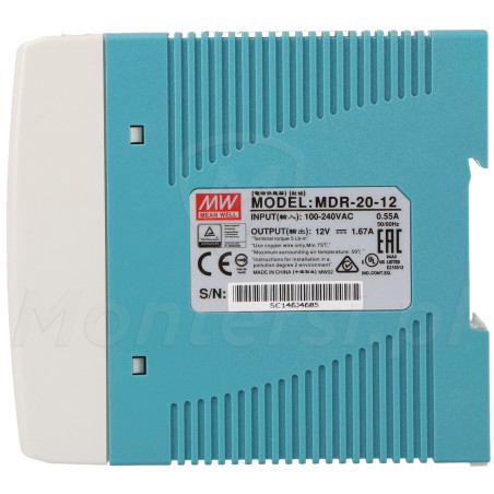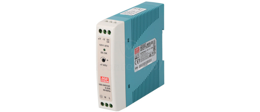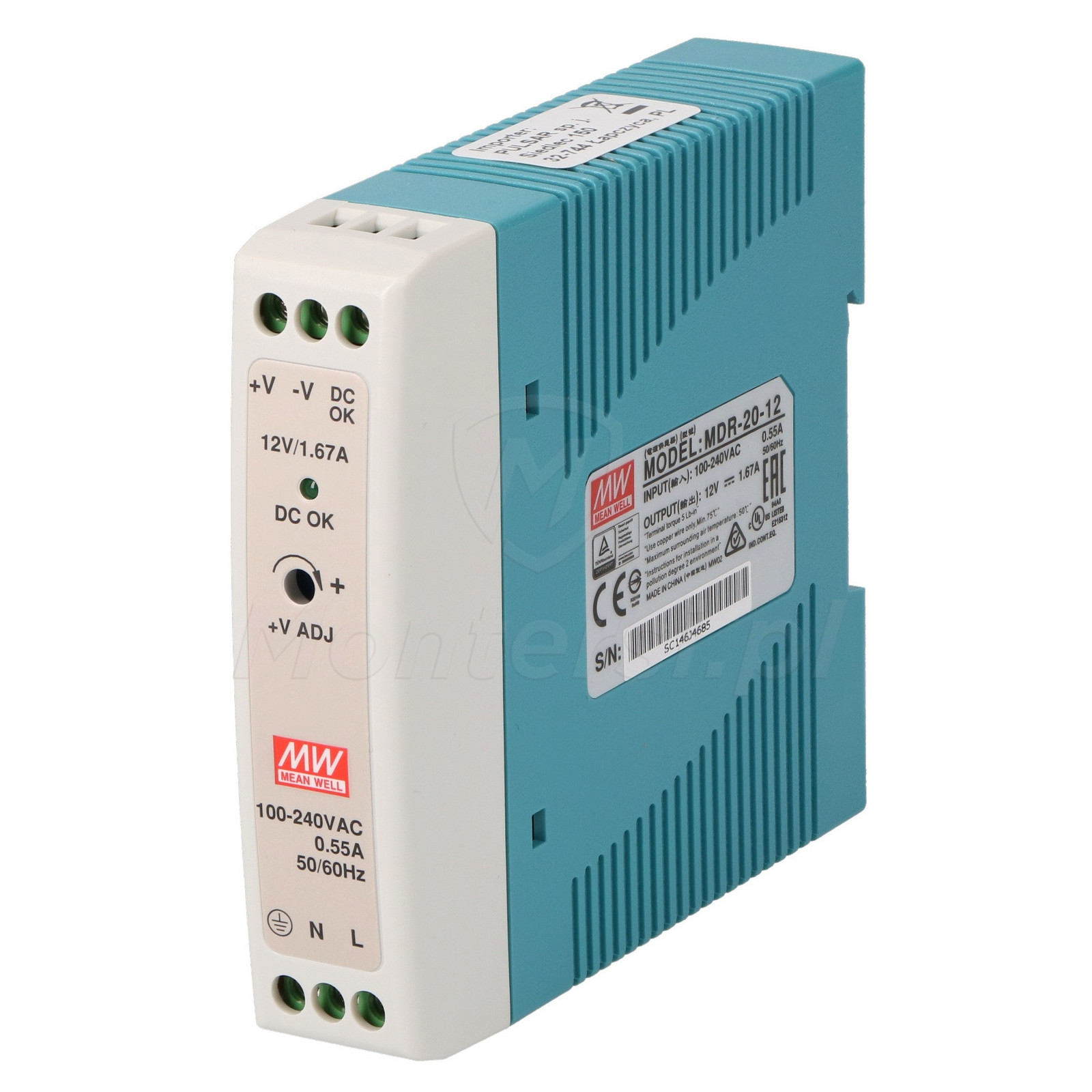 MDR-20-12 - Zasilacz na szynę DIN 12V/1x1.67A