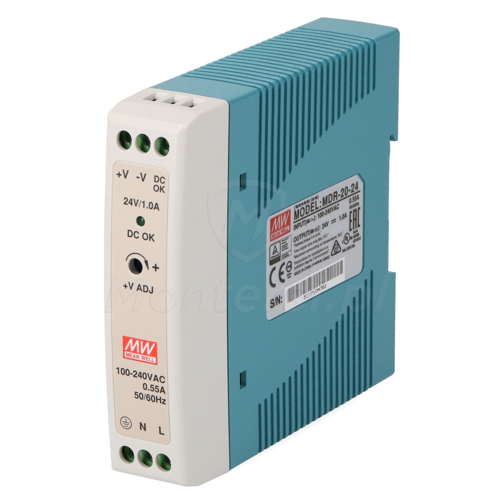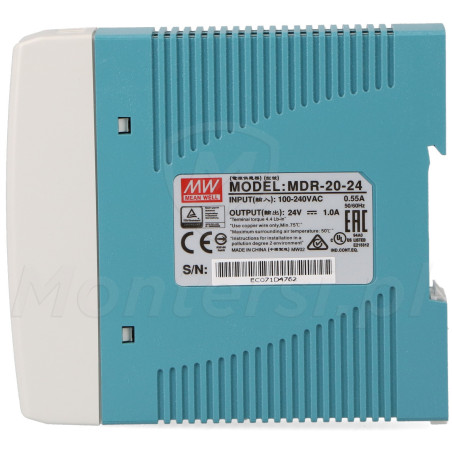 MDR-20-24 - Zasilacz na szynę DIN 24V/1x1A
