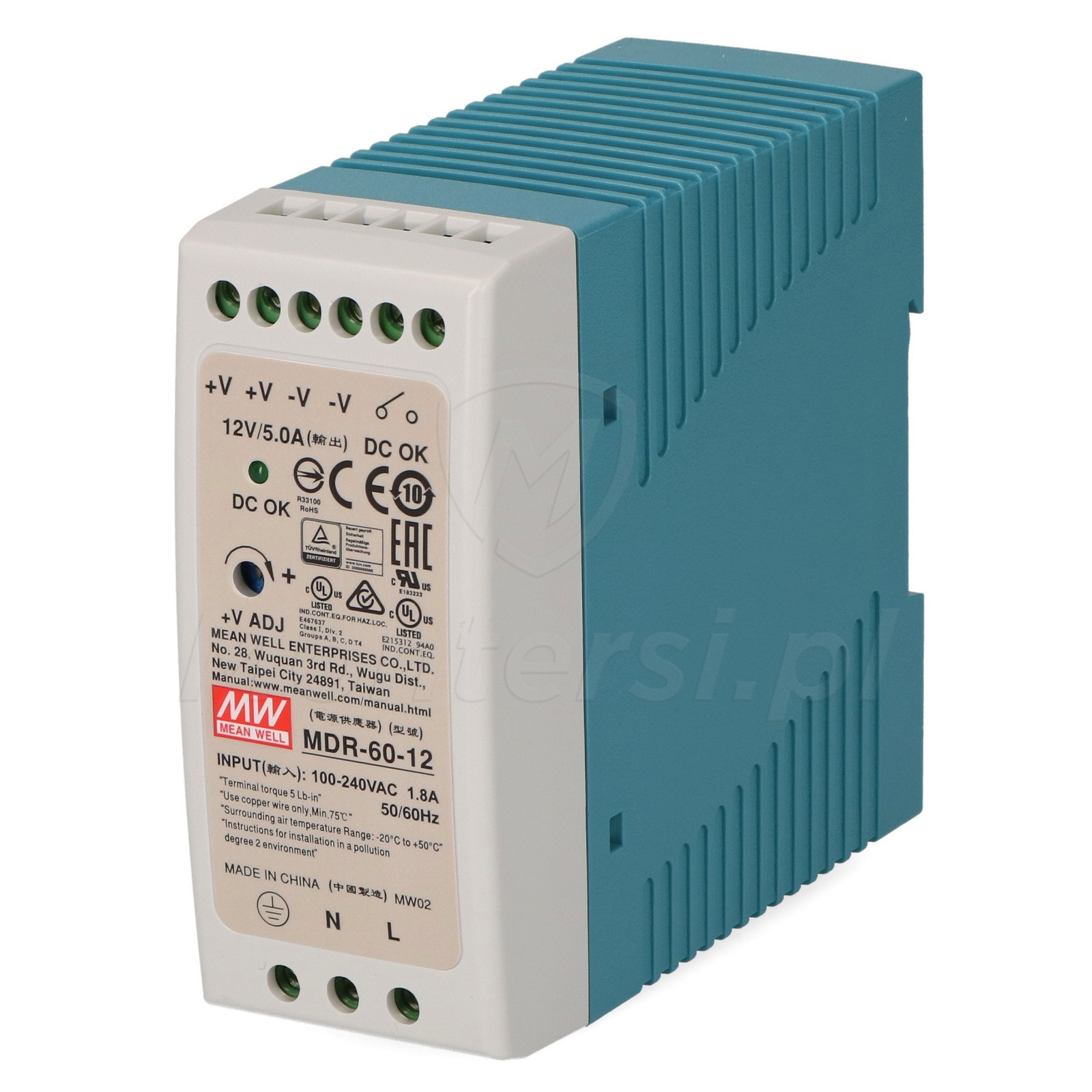 MDR-60-12 - Zasilacz na szynę DIN 12V/1x5A