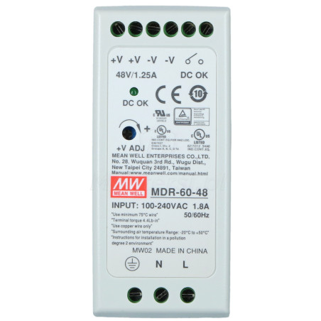MDR-60-48 - Zasilacz na szynę DIN 48V/1x1.25A