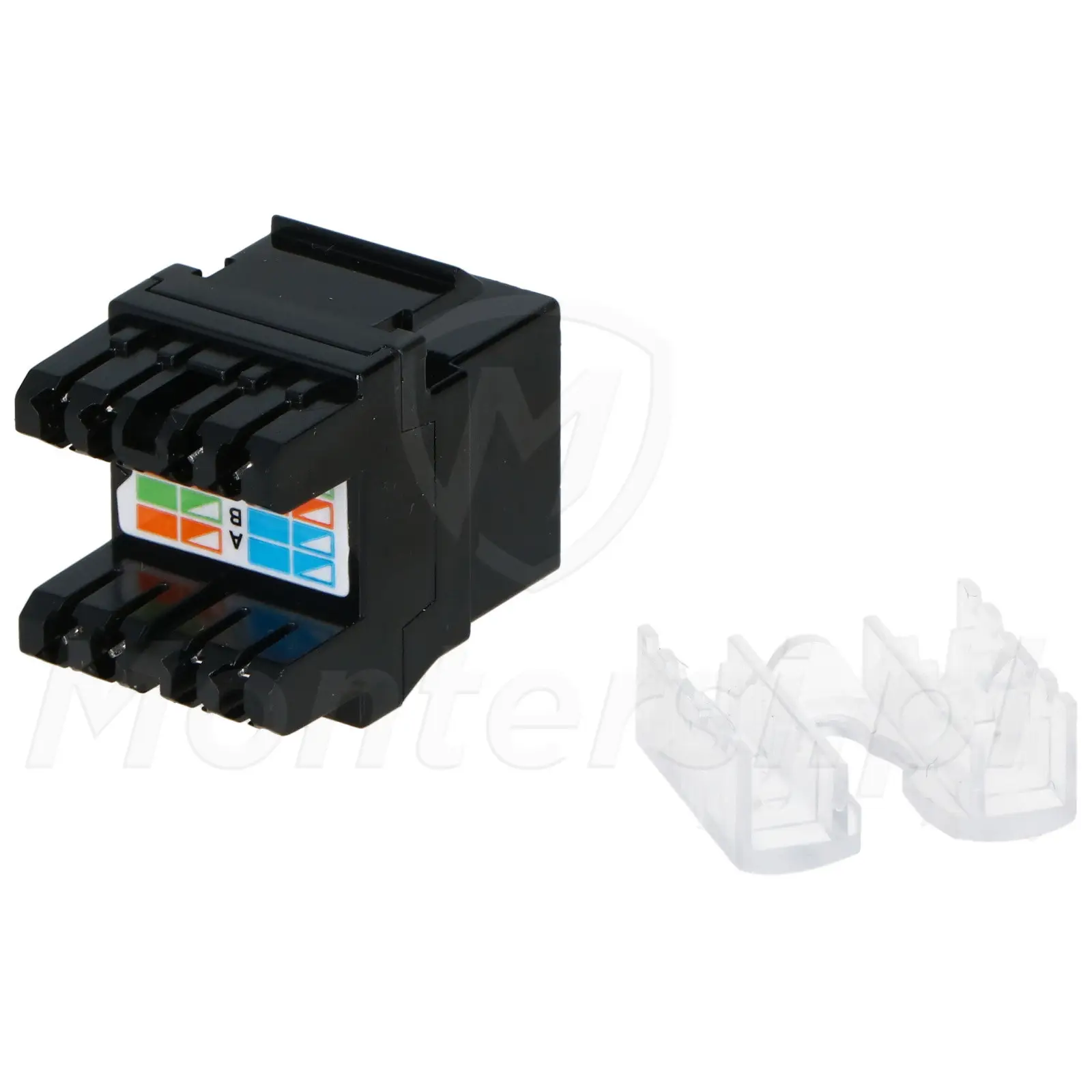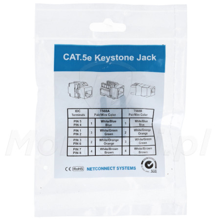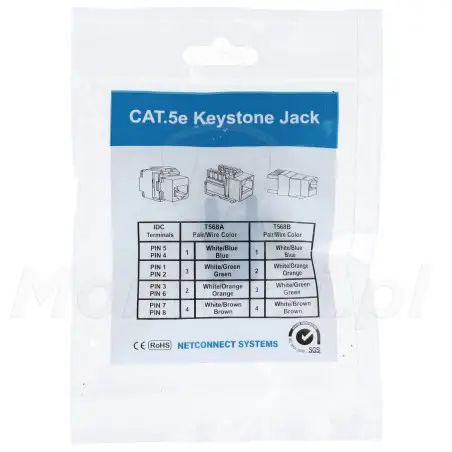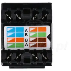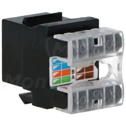 Moduł Keystone UTP kategorii 5e przeznaczony do budowy nieekranowanych gniazd abonenckich lub punktów krosowych. Przeznaczony do instalacji zgodnych z ANSI/TIA/EIA 568 kat 5e oraz ISO/IEC 11801 i EN 50173 klasy D. Z tyłu modułu zastosowano wygodny w podłączeniu panel LSA. Dzięki zastosowaniu systemu montażowego "keystone", mamy gwarancję kompatybilności z gniazdami różnych producentów. Wersja UTP jest wersją nieekranowaną. Jej montaż zalecany w instalacjach, które nie są narażone na zakłócenia elektromagnetyczne.