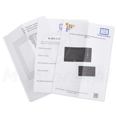 MPRO 7 WH - Głośnomówiący monitor, dedykowany do pracy w cyfrowym systemie ACO Familio PRO. Wyposażony w 7" ekran LCD i dotykowe przyciski funkcyjne, cechuje się wyjątkowo prostą obsługą. Dodatkowo realizuje on funkcję interkomu i posiada standardowe wyjścia przekaźnikowe - umożliwiające obsługę zewnętrznych urządzeń automatyki.