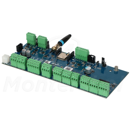 Centrala może również współpracować z maksymalnie 4 panelami dotykowymi serii TRP lub klawiaturami dotykowymi serii TK. Jej kolejną zaletą centrali jest wbudowane wejście analogowe 0 - 10 V, służące do kontroli parametrów fizycznych takich jak np.: napięcie baterii, wilgotność lub temperatura.