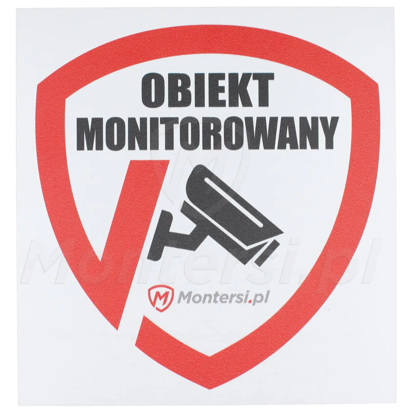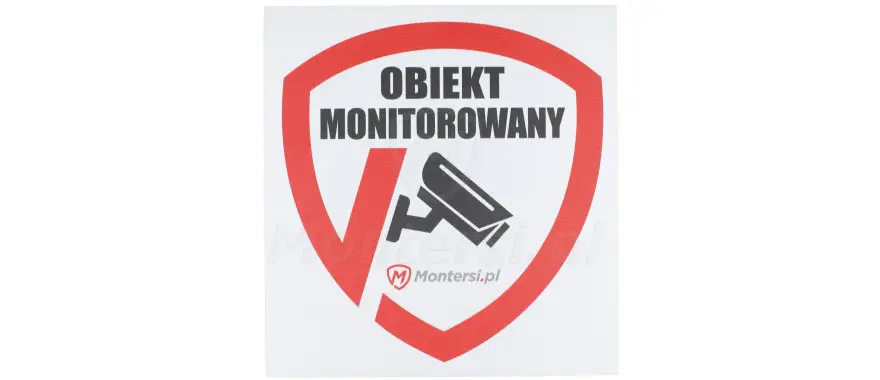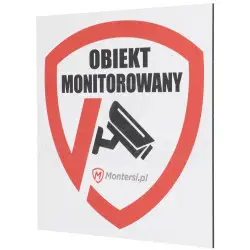 Tabliczka informująca o zastosowaniu systemu monitoringu na obiekcie. Wykonana z dibondu . Jest to materiał odporny na wpływ czynników atmosferycznych. Dibond z powodzeniem wykorzystywany jest w branży ekspozycyjnej do tworzenia wszelkich reklam zewnętrznych i wewnętrznych. Jest lekki i idealnie gładki. Dibond cechuje się także dużą wytrzymałością. Nie ulega korozji, wykazując przy tym odporność na zginanie.