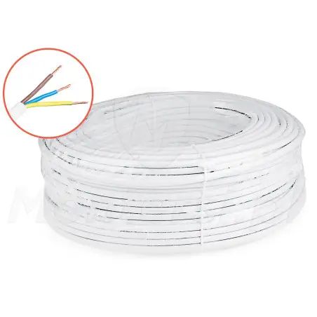 OMY 3x1.5mm²- Kabel zasilający mieszkaniowy, dedykowany do realizacji zasilania urządzeń elektrycznych o niewielkim poborze mocy. Wyposażony w 3 wielodrutowe, miedziane żyły (klasa 5), o przekroju 1.5 mm. Ich cechą charakterystyczną jest duża giętkość, dzięki czemu kabel możemy wykorzystać do łączenia urządzeń ruchomych.