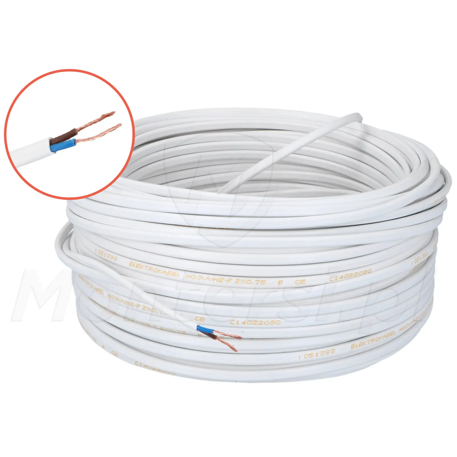 OMYp 2x0.75 - Kabel mieszkaniowy, dedykowany do realizacji zasilania urządzeń elektrycznych o niewielkim poborze mocy. Wyposażony w 2 wielodrutowe, miedziane żyły (klasa 5), o przekroju 0.75 mm. Ich cechą charakterystyczną jest duża giętkość, dzięki czemu kabel możemy wykorzystać do łączenia urządzeń ruchomych.
