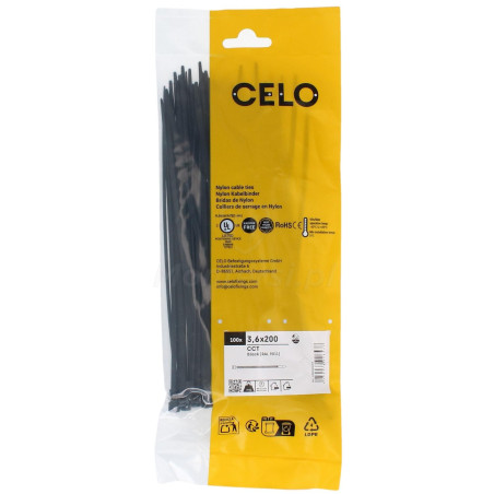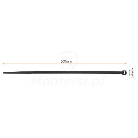 Opaska kablowa czarna 3,6 x 200 mm - 100szt