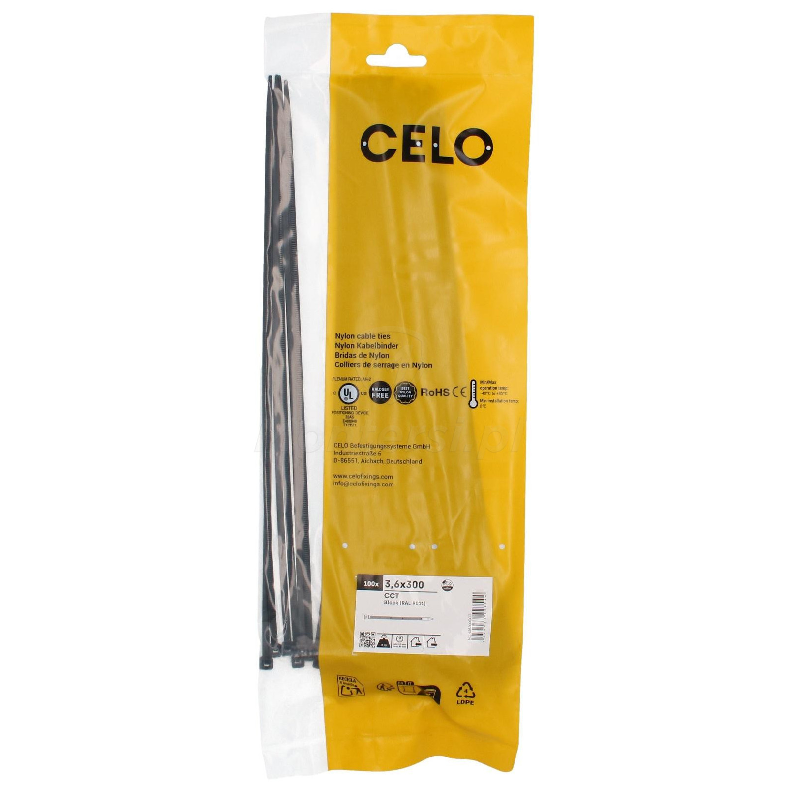 Opaski CCT są wykonane z nylonu (poliamid 6.6), dzięki czemu nie zawierają halogenu ani silikonu. Opaski CCT są odporne na promieniowanie UV i dobrze sprawdzają się w wysokich i niskich temperaturach.