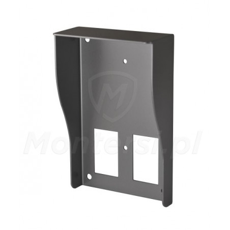 OS-12 - Aluminiowa osłona umożliwiająca natynkowy montaż stacji bramowych COMMAX serii: DRC-40KA / DRC-40KPT / DRC-40KR2. Wykonana z blachy aluminiowej malowanej proszkowo, w kolorze szarym (RAL 9006).