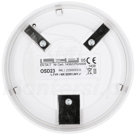Urządzenie posiada Certyfikat Zgodności CNBOP. Czujnik dymu OSD23MR polecamy zwłaszcza jako dodatek do oferowanych przez nas systemów alarmowych. Czujka OSD 23 składa się z dwóch zasadniczych części: elektronicznej (tzw. korpus czujki) oraz optyczno-dymowej (tzw. komora optyczna - koszyk).