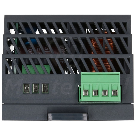 Zasilacz wyposażono w zestaw zacisków umożliwiających podłączenie zasilania sieciowego, magistrali BUS oraz połączeń ze stacją bramową. Dzięki temu może funkcjonować jako jedno z centralnych ogniw systemu VIDOS DUO. Obudowa urządzenia umożliwia montaż na szynie DIN TS35 lub bezpośrednio na ścianie. Taka konstrukcja zapewnia elastyczność instalacyjną i dopasowanie do warunków zabudowy.