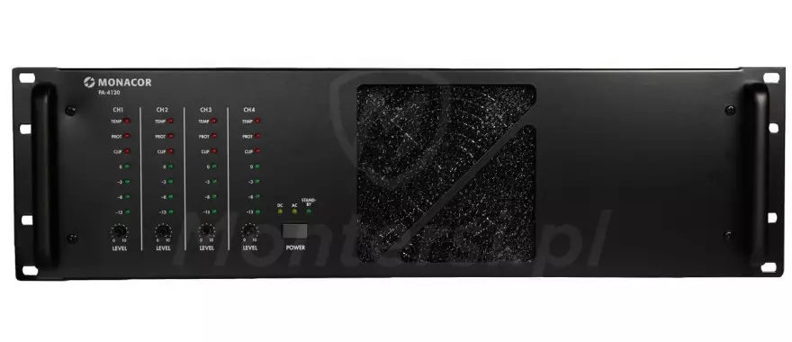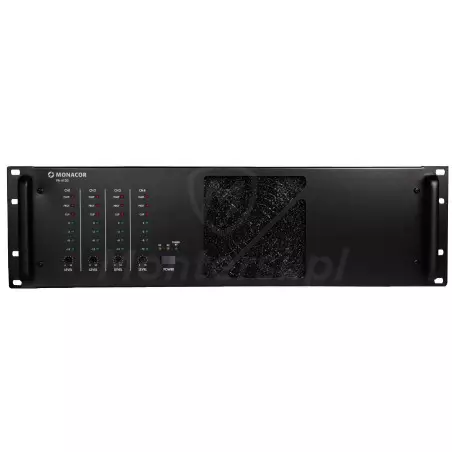 PA-4120 - To wzmacniacz cyfrowy, cztero-strefowy do zastosowań w systemach nagłośnienia PA. Zgodnie ze standardami firmy, cechuje się wysoką jakością wykonania oraz bardzo dobrymi parametrami pracy ciągłej. Może służyć jako samodzielny wzmacniacz strefowy o mocy 120 W na strefę co pozwala na zbudowanie wysokiej klasy systemu nagłośnienia. W przypadku gdy na daną strefę była by potrzebna dodatkowa moc, bez problemu możemy podłączyć kolejny wzmacniacz bezpośrednio do danej strefy. Wzmacniacz firmy Monacor został zaprojektowany aby spełnić oczekiwania nawet najbardziej wymagających użytkowników.