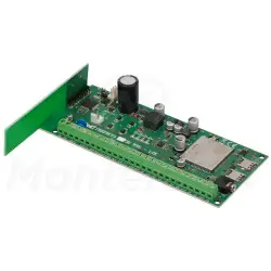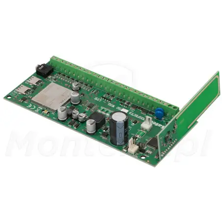 - Wbudowane 8 wejść i 4 wyjścia przewodowe, z możliwością rozbudowy do 32 wejść i 12 wyjść przewodowych (np. przy pomocy ekspanderów INT-E lub INT-O)