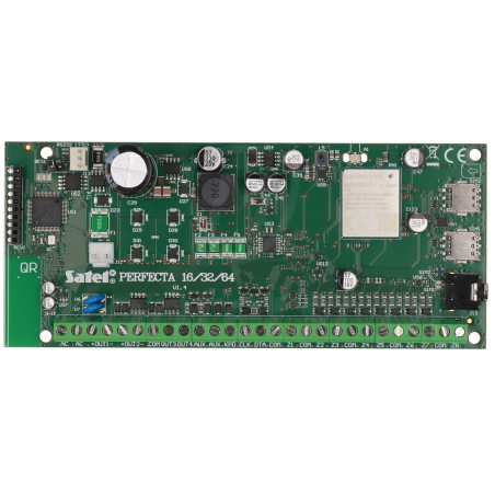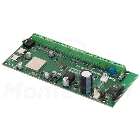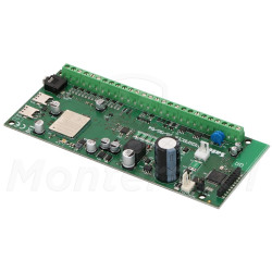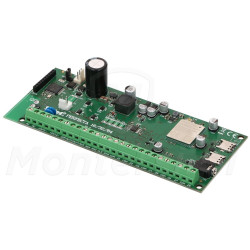 - Wbudowane 8 wejść i 4 wyjścia przewodowe, z możliwością rozbudowy do 64 wejść i 64 wyjść (np. przy pomocy ekspanderów INT-E, INT-O, INT-ORS)