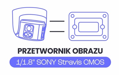 Przetwornik 1/1.8" SONY Starvis CMOSSzczegółowy obraz w rozdzielczości 8 MpxWysokiej klasy przetwornik 1/1.8" CMOS Progressive Scan Starvis generuje wyjątkowo szczegółowy i płynny obraz w rozdzielczości 8 Mpx (5120 x 1440). Duży przetwornik gwarantuje bardzo dobrą jakość obrazu w nocy, dzięki wysokiej czułości i zwiększonej ilości rejestrowanego światła. Dodatkowo szeroki kąt widzenia pozwala uchwycić szerszą scenę z zachowaniem wysokiego poziomu detali, co znacząco podnosi skuteczność monitoringu. W całkowitej ciemności kamera korzysta z oświetlacza IR lub WarmLight. |