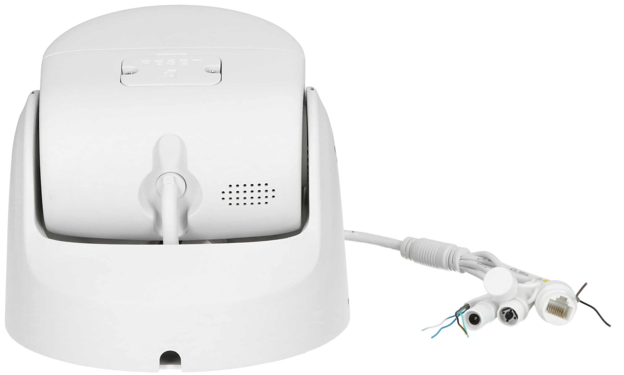 Obsługa alarmówIntegracja z systemami bezpieczeństwaKamera wyposażona jest w jedno wejście oraz jedno wyjście alarmowe, co umożliwia integrację z zewnętrznymi czujnikami, sygnalizatorami lub innymi elementami systemów zabezpieczeń. Dzięki temu możliwe jest automatyczne wyzwalanie akcji, takich jak: uruchomienie alarmu, powiadomienia czy innych reakcji systemu w odpowiedzi na wykryte zdarzenia. Dodatkowo kamerę wyposażono w przycisk reset, obok przewodów zasilajacych, dając możliwość przywrócenia ustawień fabrycznych bez rozkręcania obudowy. |
