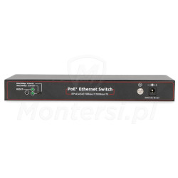 - Wbudowane 2 porty UPLINK fast ethernet, do podłączenia rejestratora lub innego urządzenia sieciowego (10 / 100 Mb/s)