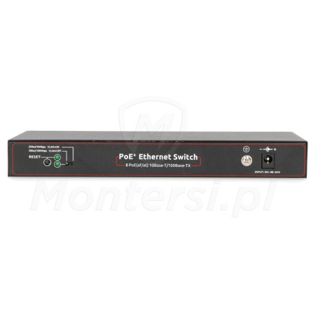 - Wbudowane 8 portów PoE 802.3af / 802.3at, służących do podłączenia kamer (10 / 100 Mb/s)