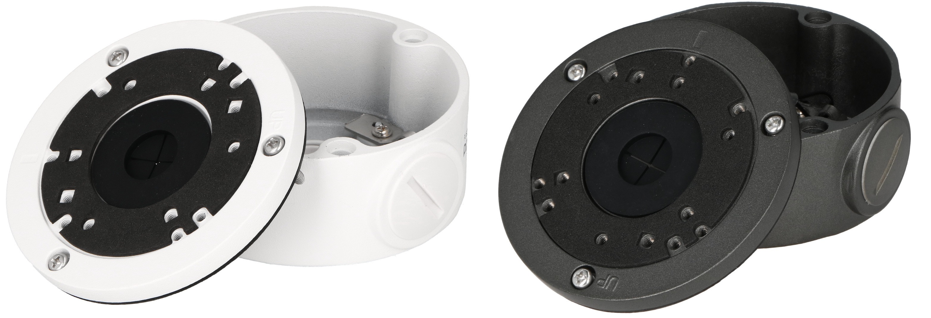 Metalowe uchwyty montażowe do kamer PIXIR. We wnętrzu uchwytu znajduje się pusta przestrzeń, która umożliwia podłączenie i ukrycie przewodu połączeniowego. Uchwyt PIX-JBU jest kompatybilny z kamerami PIX-IP5FBIR-Ai, PIX-IP5FBL-Ai, PIX-IP5FDMIR-Ai, PIX-IP5FDML-Ai.