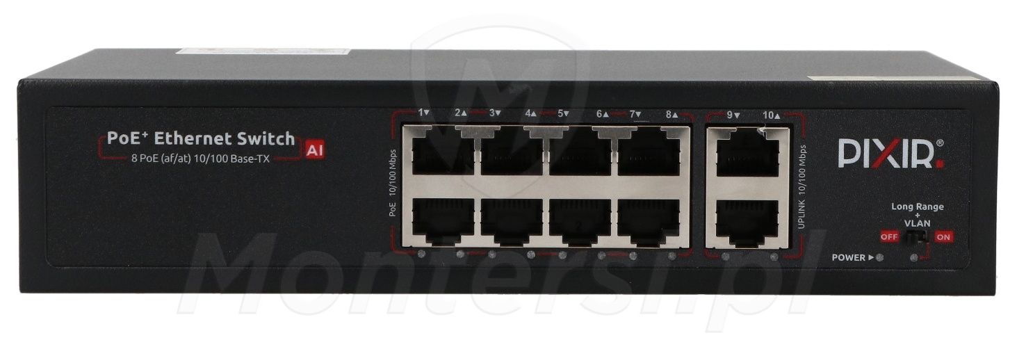 - PIX-POE8AT-2FE-PS - switch 8x PoE + 2x Uplink FE - 1 szt.