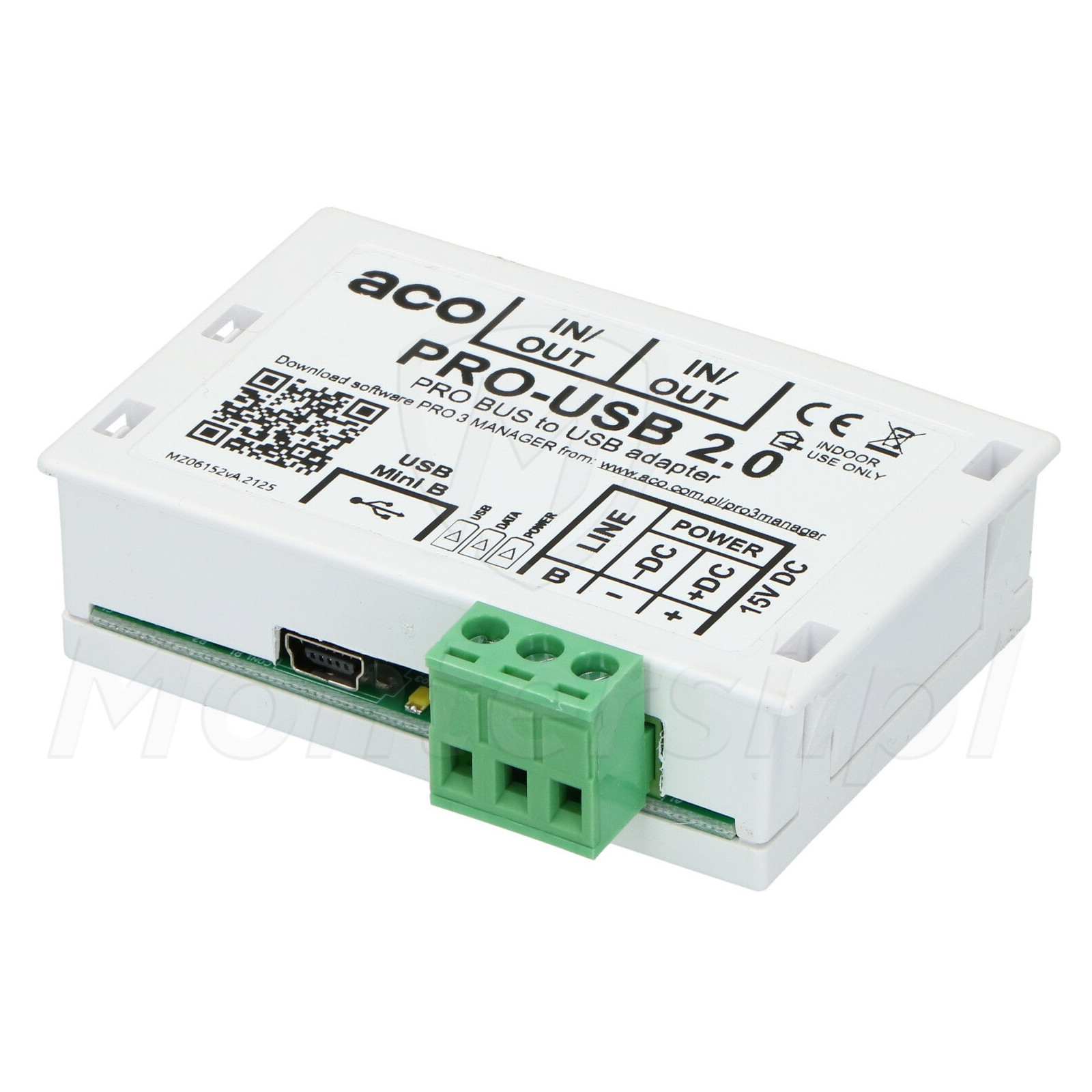 PRO-USB 2.0 - Interfejs komputerowy przeznaczony do programowania i zarządzania ustawieniami urządzeń PRO 3-generacji. Urządzenie kompatybilne jest z serią COMO-PRO oraz GLASS-PRO oraz innymi urządzeniami serii G3. Do najważniejszych zalet urządzenia zaliczyć można:
