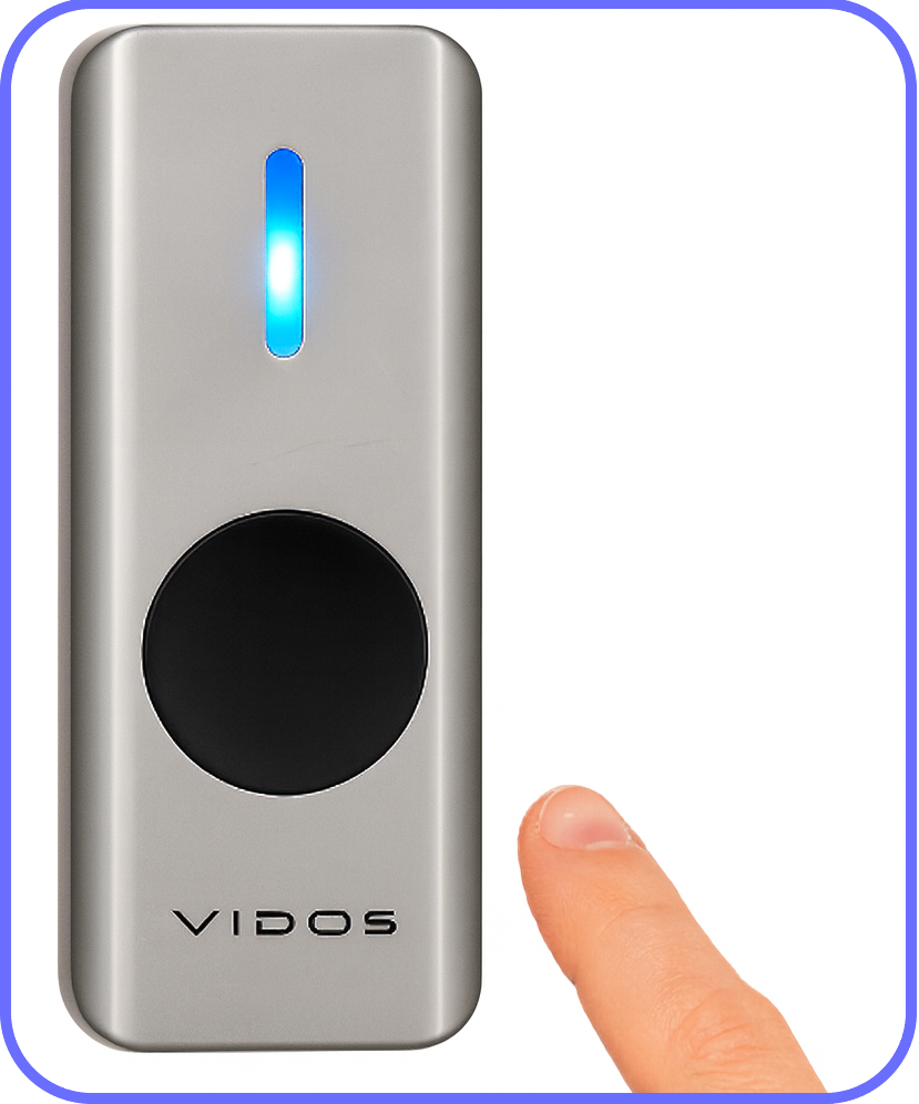 Przycisk bezdotykowy OP09 marki VIDOS to urządzenie przeznaczone do sterowania elektrozaczepami i zworami elektromagnetycznymi w systemach kontroli dostępu. Dzięki funkcji zbliżeniowej umożliwia otwieranie drzwi poprzez ruch ręki, eliminując konieczność kontaktu fizycznego z powierzchnią.