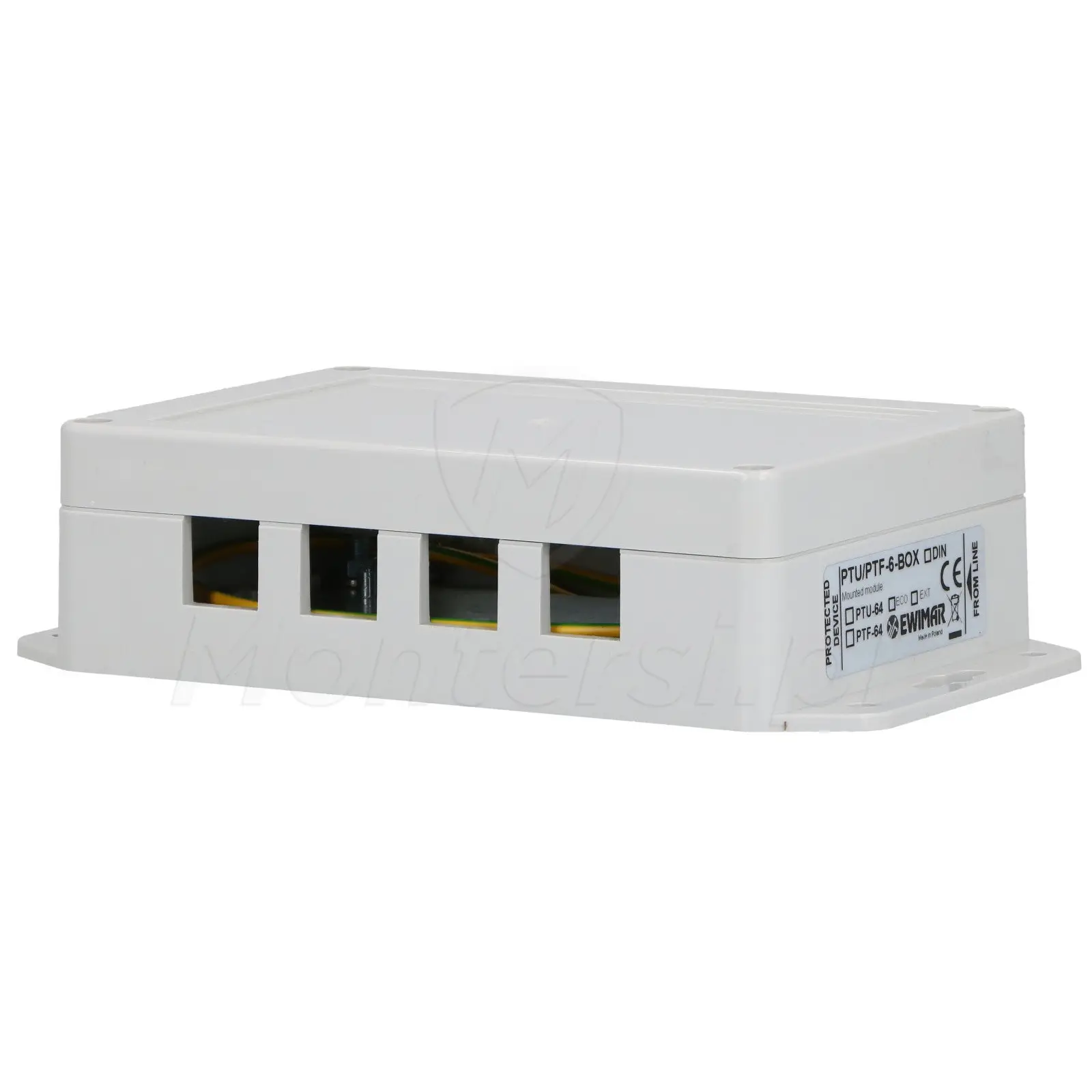 PTU/PTF-6-BOX - Wolnostojąca obudowa do montażu 4-kanałowych modułów przepięciowych serii PTF-64 i PTU-64. Znajduje zastosowanie w systemach monitoringu IP, umożliwiając zabezpieczenie elementów rozproszonej sieci, takich jak kamery IP. Do cech charakterystycznych obudowy PTU/PTF-6-BOX można zaliczyć: