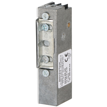 Funkcją elektrozaczepu jest blokada zabezpieczonego nim wejścia i jego zwolnienie po podaniu napięcia zasilającego cewkę elektrozaczepu. Zapadka regulowana w zakresie 3 mm umożliwia regulację luzu.