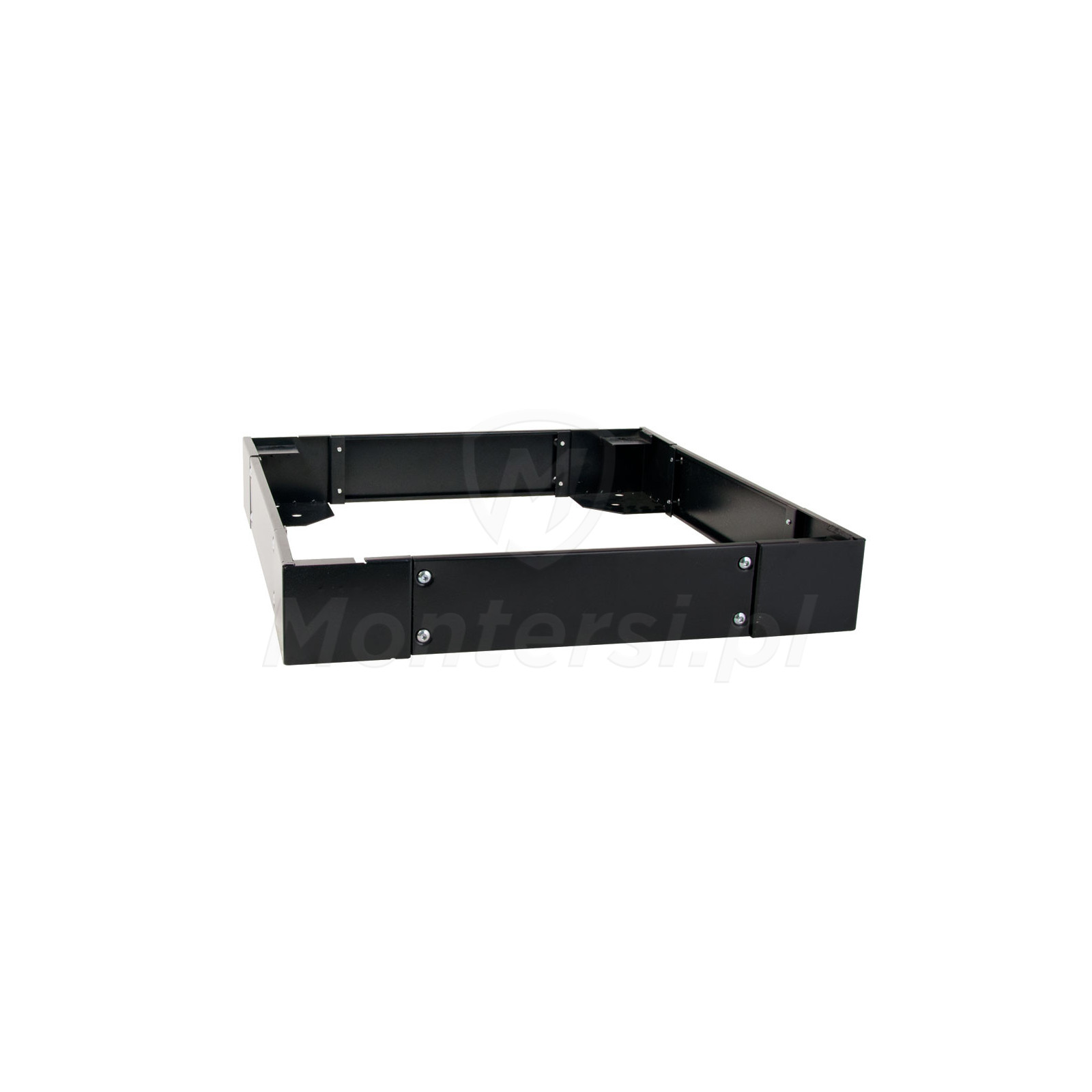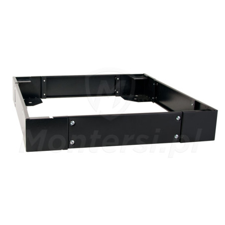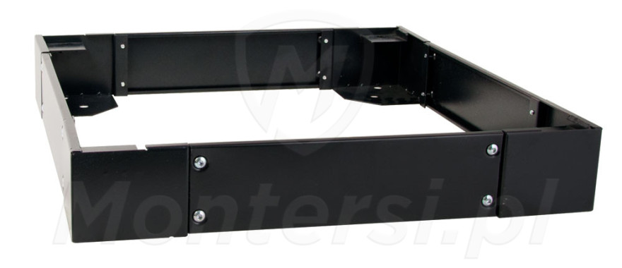 RAC166 - Cokół do szaf stojących standardu RACK 19". Umożliwia ustabilizowanie i przymocowanie do podłogi szafy o wymiarach podstawy 600 x 600 mm. Cokół został wykonany z blachy walcowanej na zimno (SPCC) w kolorze czarnym (RAL9004)