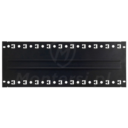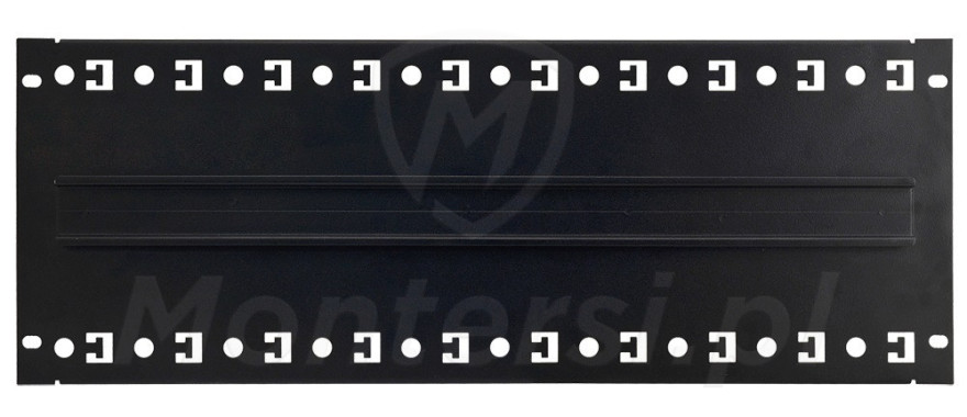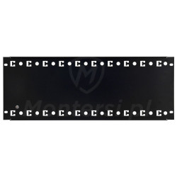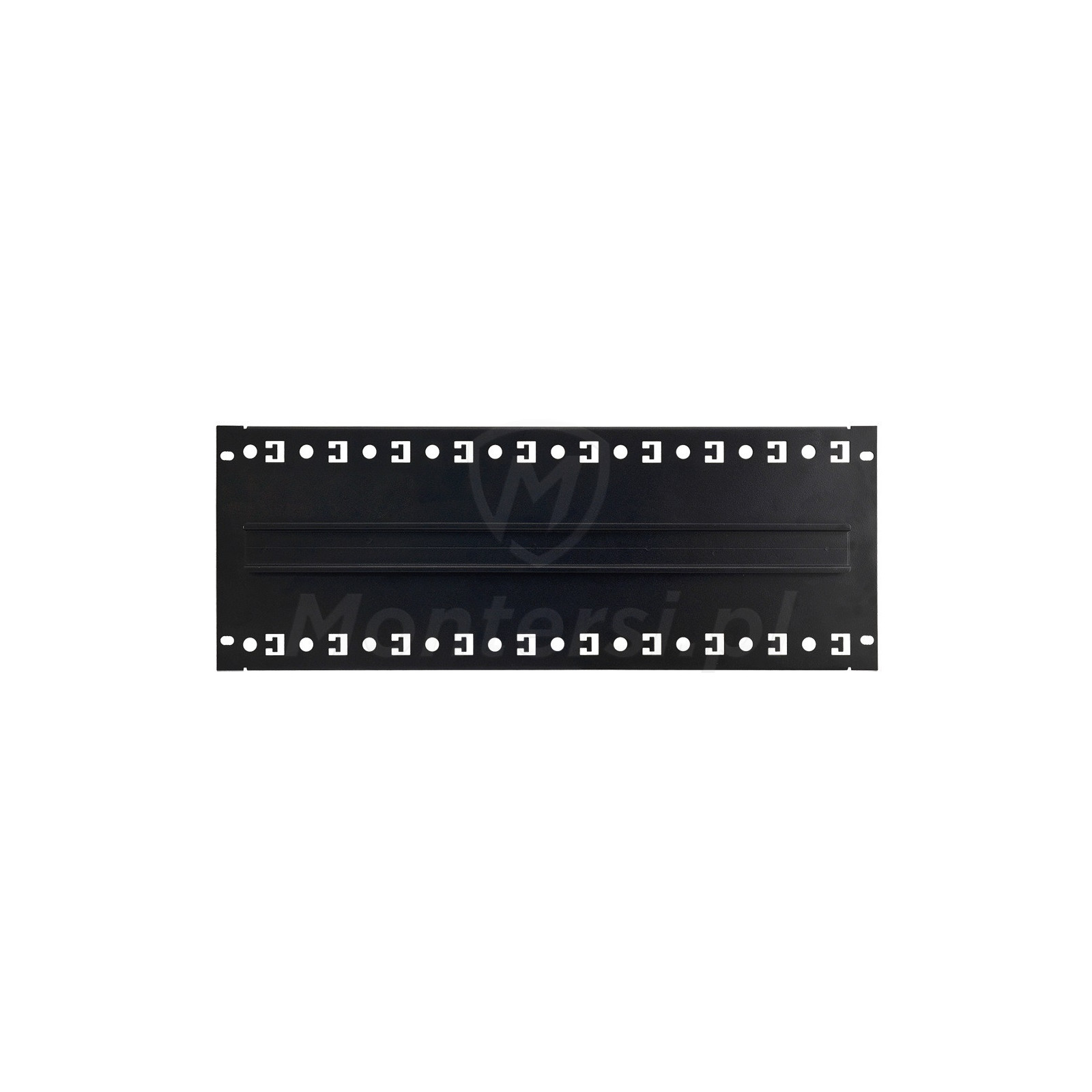 RADIN - Blacha montażowa 4U z szyną DIN 24xS. Blacha przeznaczona do montażu urządzeń standardowo montowanych na szynie DIN w tylnej części szafy RACK 19". Szyna TH35 oferuje stabilny i pewny montaż urządzenia oraz przeprowadzenie kabli sygnałowych i zasilających. Akcesorium wykonane zostało z blachy DC01 o grubości 1 mm i pomalowane proszkowo na kolor czarny ( RAL 9005 ).