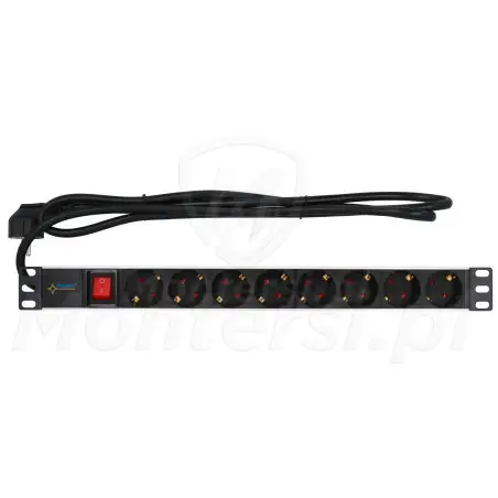 RALZ/F - Listwa zasilająca 230V AC do szafy standardu RACK 19", 8 gniazd F/Schuko z podwójnym uziemieniem