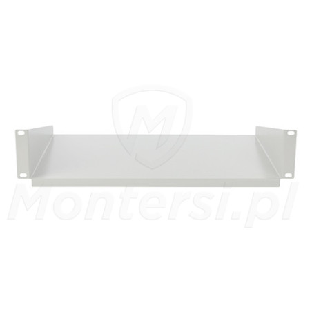 RAPD2-G - Półka stała do szaf typu RACK 19", przeznaczona do instalowania urządzeń, które nie są wyposażone obudowy pasujące do profilu RACK. Wykonana z blachy walcowanej na zimno (SPCC) w kolorze szarym (RAL7035). Doczołowa półka jest mocowana 4-punktowo, co gwarantuje jej stabilność.
