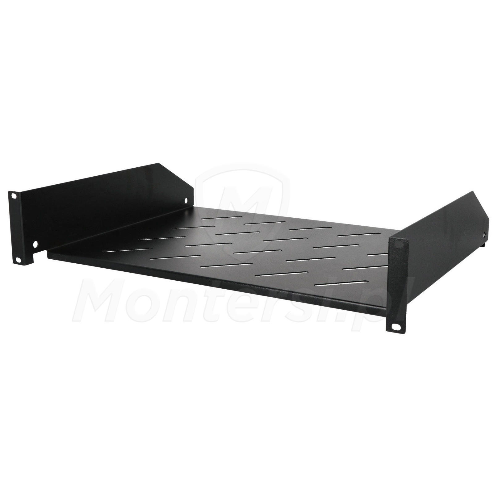 RAPD600 - Półka stała do szaf typu RACK 19", przeznaczona do instalowania urządzeń, które nie są wyposażone obudowy pasujące do profilu RACK. Wykonana z blachy walcowanej na zimno (SPCC) w kolorze czarnym (RAL9004). Doczołowa półka jest mocowana 4-punktowo, co gwarantuje jej stabilność.