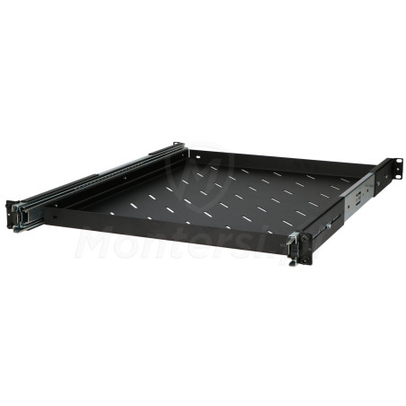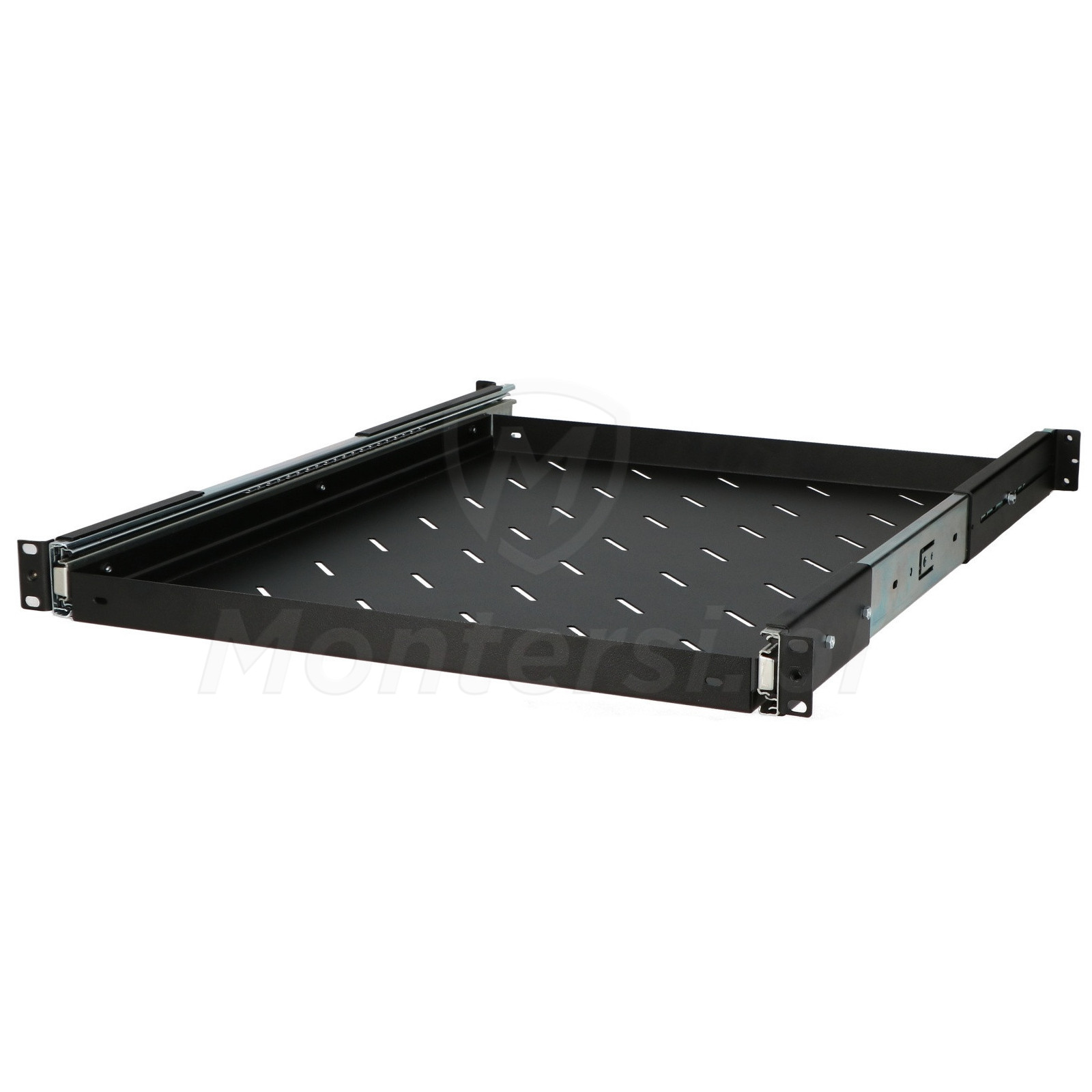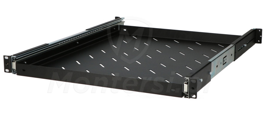 RAPW800 - Półka wysuwna do szaf typu RACK 19", przeznaczona do instalowania urządzeń, które nie są wyposażone obudowy pasujące do profilu RACK. Wykonana z blachy walcowanej na zimno (SPCC) w kolorze czarnym (RAL9004). Półka mocowana jest 4-punktowo, co gwarantuje jej stabilność.