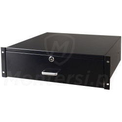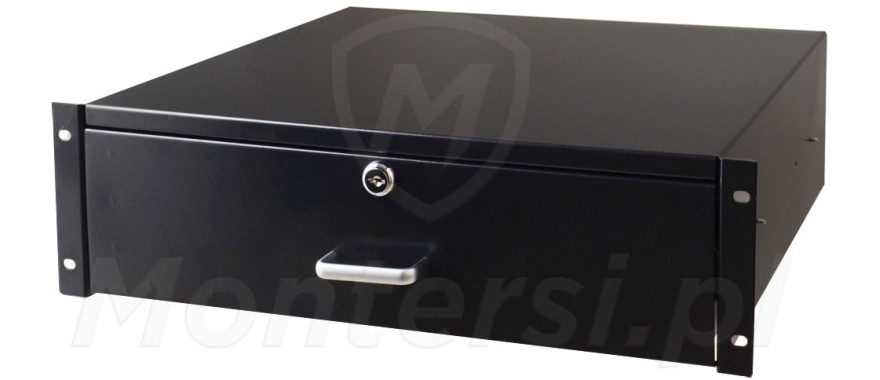RASR3 - Szuflada przystosowana do przechowywania i montowania dedykowanych elementów w szafach spełniających standard RACK. Wyposażona w szyny umożliwiające pełny wysuw, co umożliwia dodanie do niej nowych urządzeń, bez konieczności rozbierania całej szafy. Szafa została wykonana z blachy walcowanej na zimno (SPCC) w kolorze czarnym (RAL9004). Mocowana 4-punktowo do profilu RACK.