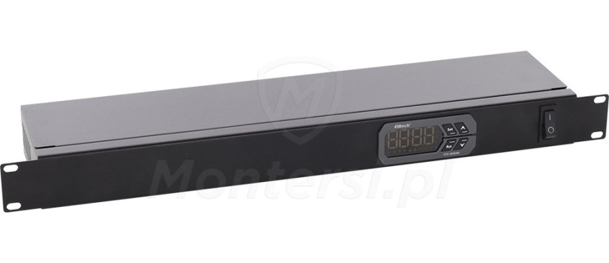 RAT-1R - Cyfrowy termostat służący do automatycznego sterowania wentylatorami w szafach standardu RACK. Panel umożliwia sterowanie zespołem wentylatorów typu RAWP / RAWP-1 / RAW1 / RAW2. W komplecie z panelem znajduje się rozłączany czujnik temperatury o długości 2 m.