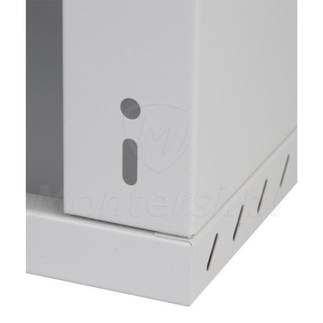 Połączenie wsporników z korpusem szafy za pomocą śrub pozwoliło na stworzenie systemu regulacji. Daje to większą swobodę przy organizacji wnętrza szafy. Otwory montażowe wykonane w trzech różnych głębokościach zostały odsunięte od siebie co 30 mm. Zabieg ten pozwala na jak najlepsze dopasowanie szafy do umieszczonych w niej komponentów.