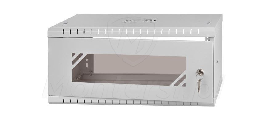 RC19-4U-350GG - Wisząca szafa RACK 19" ze szklanymi drzwiami, umożliwiająca montaż do kilkunastu urządzeń w miejscu z ograniczoną przestrzenią. W szafie możemy zainstalować elementy min: