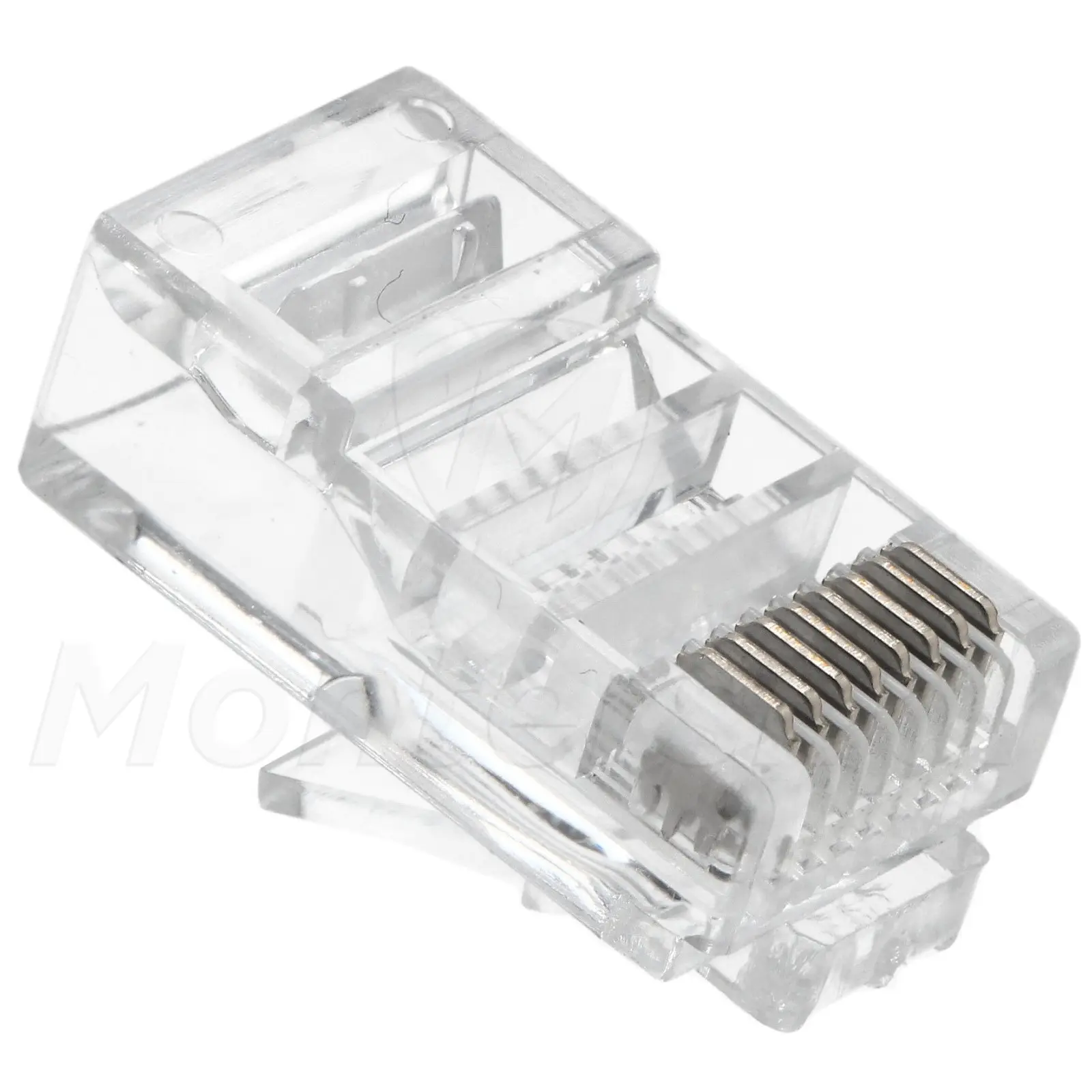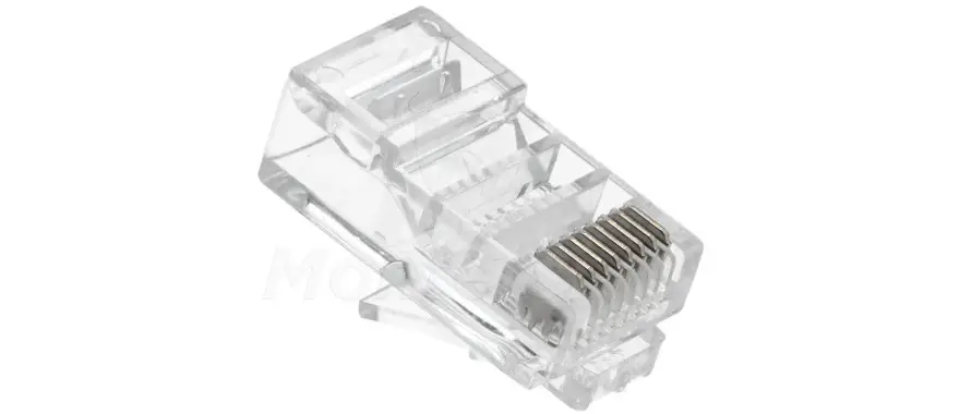 8-pinowy wtyk RJ-45, przystosowany do zaciskania na kablach UTP lub STP. Szeroko stosowany w sieciach teleinformatycznych i systemach monitoringu wizyjnego IP. Jest przystosowany do transmisji danych cyfrowych, jednak w urządzeniach z technologią PoE, może służyć również do realizacji zasilania.