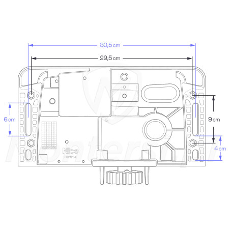 Uwaga! Otwory montażowe kompatybilne z poprzednią generacją napędów Robus. Wysokość koła zębatego to 85mm (7 mm niżej w stosunku do poprzedniego modelu).