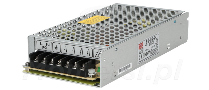Modułowy zasilacz impulsowy, przystosowany do zasilania urządzeń elektrycznych wymagających napięcia 22.8 - 26.4V DC (6.5 A). RS-150-24 został zaprojektowany w zgodnie z surowymi standardami, dzięki czemu cechuje się bardzo dobrymi parametrami pracy i długim czasem życia. Model może być z powodzeniem używany do zasilania systemów sterowania, oświetlenie i innych podobnych.