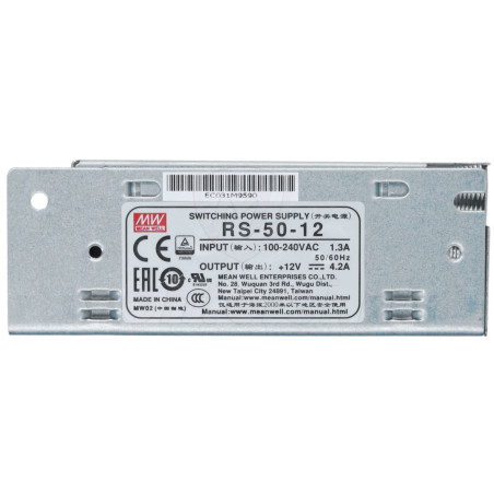 Modułowy zasilacz impulsowy, przystosowany do zasilania urządzeń elektrycznych wymagających napięcia 10.8 - 13.2V DC (4.2 A). RS-50-12 został zaprojektowany w zgodnie z surowymi standardami, dzięki czemu cechuje się bardzo dobrymi parametrami pracy i długim czasem życia. Model może być z powodzeniem używany do zasilania systemów sterowania, oświetlenie i innych podobnych.