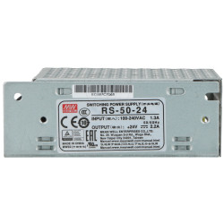 Modułowy zasilacz impulsowy, przystosowany do zasilania urządzeń elektrycznych wymagających napięcia 22 - 27.2V DC (2.2 A). RS-50-24 został zaprojektowany w zgodnie z surowymi standardami, dzięki czemu cechuje się bardzo dobrymi parametrami pracy i długim czasem życia. Model może być z powodzeniem używany do zasilania systemów sterowania, oświetlenie i innych podobnych.