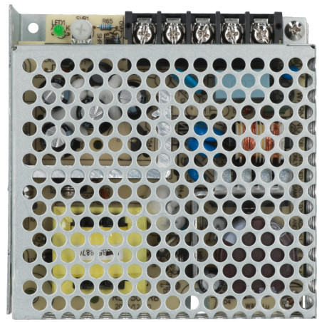 RS 50 24 dokonuje zamiany napięcia wejściowego 88 - 264V AC lub 125 - 373V DC, na odpowiednie napięcie wyjściowe - może być ono regulowane przez użytkownika w zakresie 22 - 27.2V DC. Zasilacz impulsowy jest niezawodny oraz charakteryzuje się długim czasem życia i wysoką sprawnością na poziomie 84%. Swój długi czas życia, w dużym stopniu, zawdzięcza zastosowaniu wydajnych kondensatorów. Dodatkową zaletą modelu jest sygnalizacja optyczna (dioda LED), wskazująca kiedy urządzenie pracuje.