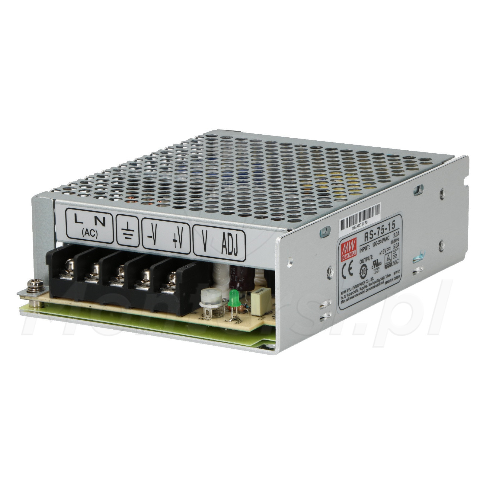 RS-75-15 - Przemysłowy zasilacz impulsowy 15V/1x5A