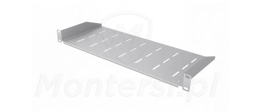 RSF19-1U-250G - Półka pozwalająca na montaż w szafie typu RACK 19"urządzeń niewyposażonych w uchwyty montażowe. Dzięki niej możemy w szafie zainstalować praktycznie dowolne urządzenie. Spód półki posiada otwory, które mogą posłużyć do zabezpieczenia sprzętu np. opaskami zaciskowymi. Dodatkowo otwory zapewniają grawitacyjną cyrkulację powietrza co korzystnie wpłynie na chłodzenie urządzenia położonego na niej. Półka została wykonana z blachy stalowej walcowanej na zimno o grubości od 0.8 do 1.2 mm co gwarantuje jej stabilność.