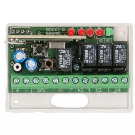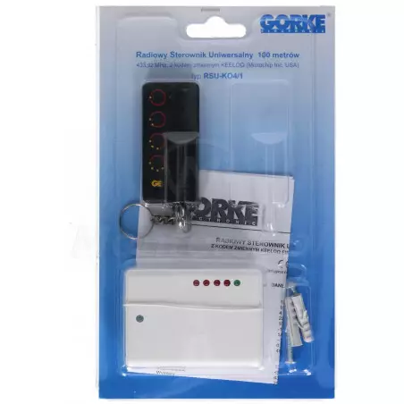 RSU-K04/1 - Zestaw złożony z 4 kanałowego odbiornika RSU-K04 oraz pilota PUK-104. Urządzenia pracują na częstotliwości 433.92MHz a zasięg pilota wynosi 100 metrów. Odbiornik może zostać podłączony do czterech urządzeń, dzięki czemu jednym pilotem możemy sterować np. bramą wjazdową i garażową, oświetleniem itd. Do najważniejszych cech zestawu można zaliczyć: