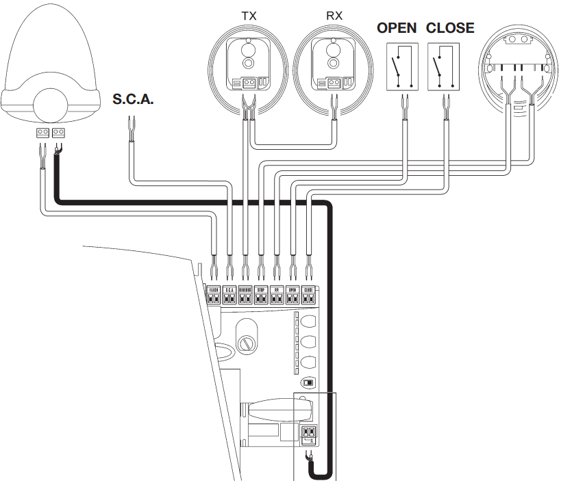 Siłownik RUN1200HS został wyposażony w centralę sterującą w technologii BLUEBUS. Zapewnia ona wysoką funkcjonalność i umożliwia łatwe podłączenie urządzeń dodatkowych. Urządzenia peryferyjne są podłączane do 2-żyłowej magistrali komunikacyjnej, po której realizowane jest również zasilanie. Technologia BLUEBUS zmniejsza ilość wymaganych przewodów (w porównaniu z klasycznymi centralami), dzięki czemu cała instalacja jest bardziej czytelna. Wymaga ona jednak ustawienie podłączonym urządzeniom odpowiednich adresów.