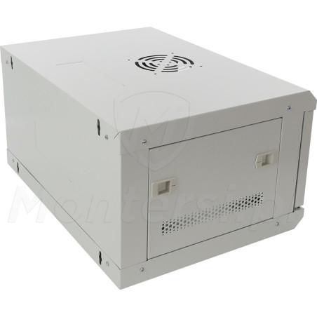 RWA664 - Wisząca szafa standardu RACK 19", przeznaczona do integracji systemów kontroli dostępu (KD), systemów alarmowych (SSWiN) i systemów telewizji przemysłowej (CCTV). Umożliwia przechowywanie wszystkich istotnym elementów w jednym miejscu, a także łatwy i szybki dostęp do poszczególnych urządzeń zamontowanych wewnątrz szafy.