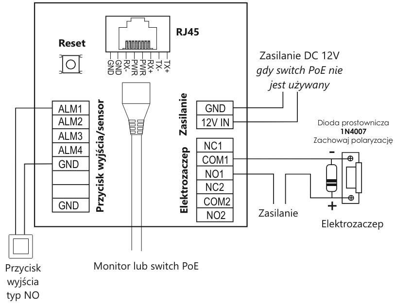 - Zasilanie 12 V DC lub PoE 802.3 af